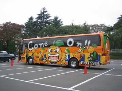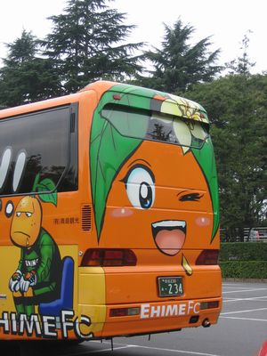 ちなみにこれは「2号」だそうです。バックがたま媛ちゃんなのが2号、オーレくんなのが1号だそうです。そしてこちらのバス、クラブではなくバス会社の所有物だそうで、普通の観光用に使われてたりして、