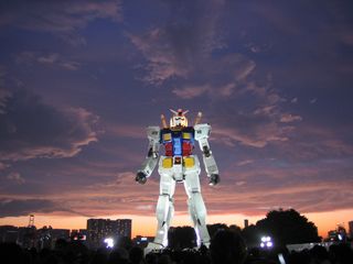 夕暮れにたたずむガンダム。