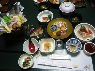 こちらは宿の夕食。これにおすましとご飯とお味噌汁、ミニそばがつきます。