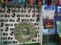 リーグ優勝シャーレのレプリカ。うしろに立って記念撮影ができるので