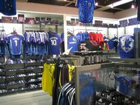 地下1Fの無料エリアには各チームのグッズ展示がずらり。