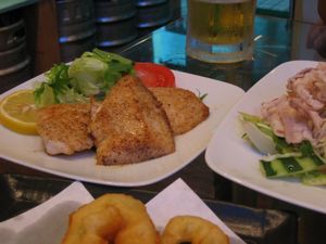奥にいらっしゃるのがマンボウのバター焼き。