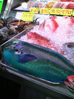 公設市場に横たわるアオブダイ。